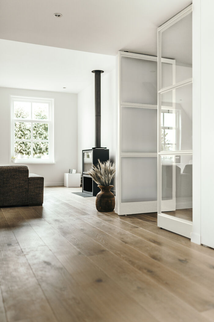 Waar een zwarte deur - al dan niet gecombineerd met glas - en behoorlijke statement in je interieur is, zijn witte stalen deuren juist neutraal. De kleur wit oogt namelijk schoon en licht, en tegelijkertijd subtiel.